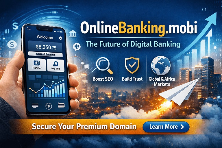 Africa: Mobile banking and fintech adoption are surging, driven by smartphone growth, mobile money, and financial inclusion initiatives. A domain like OnlineBanking.mobi positions startups and established brands to capture these high-growth markets.